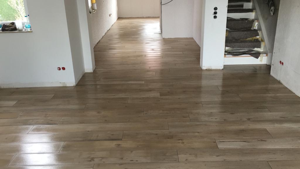- Verlegung von Bodenfliesen in Holzoptik